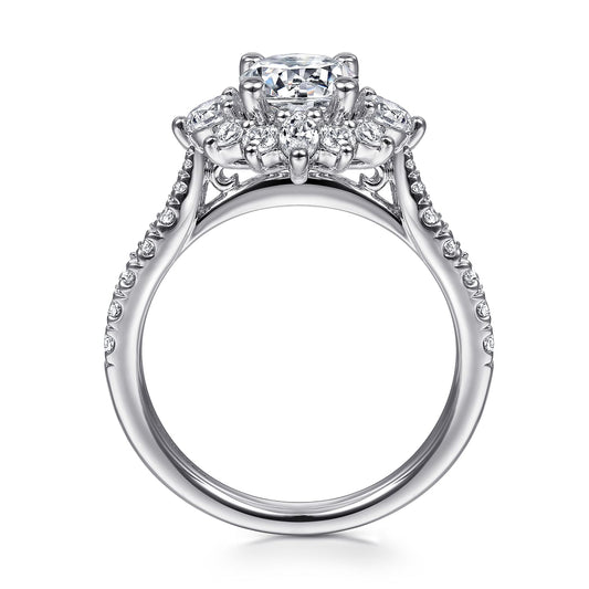 Unique 14K White Gold Round Halo Diamond Engagement Ring
