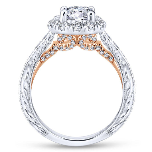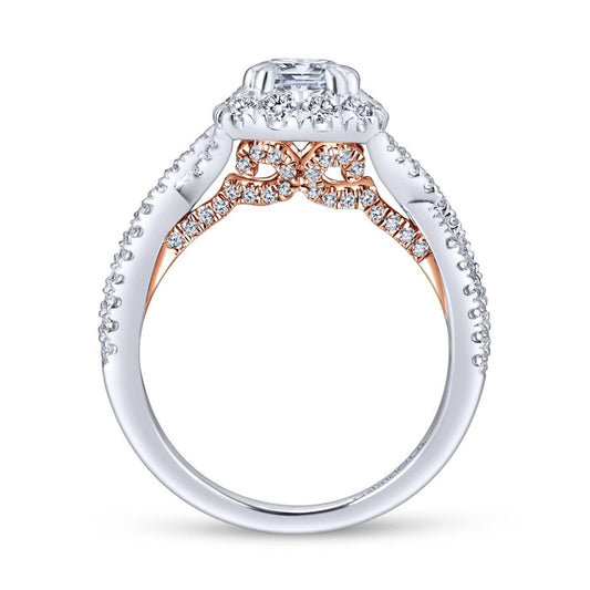 Gabriel & Co. 14k Two Tone Gold Blush Halo Engagement Ring