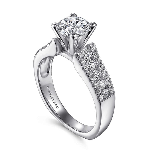 Gabriel & Co | Gina - 14K White Gold Round Twisted Diamond Engagement Ring