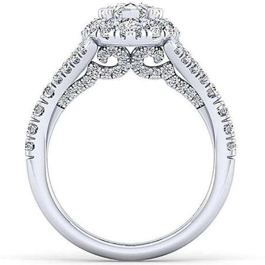 Gabriel & Co | Lexie - 14k White Gold Cushion Double Halo Round Diamond Engagement Ring
