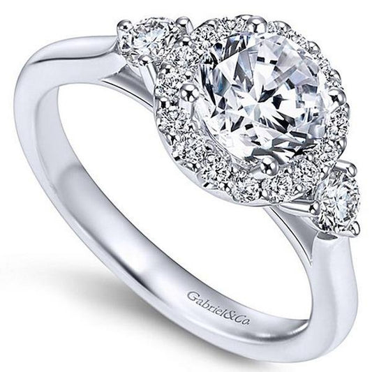 Gabriel "Noelle" Three Stone Halo Diamond Engagement Ring