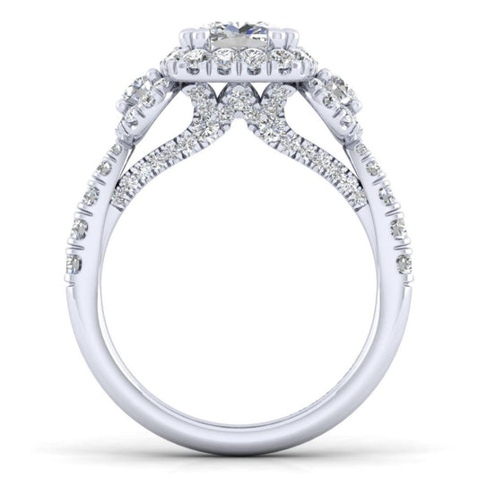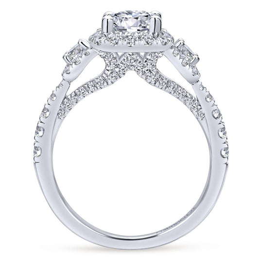 Gabriel & Co. 14k White Gold Entwined Three Stones Halo Engagement Ring