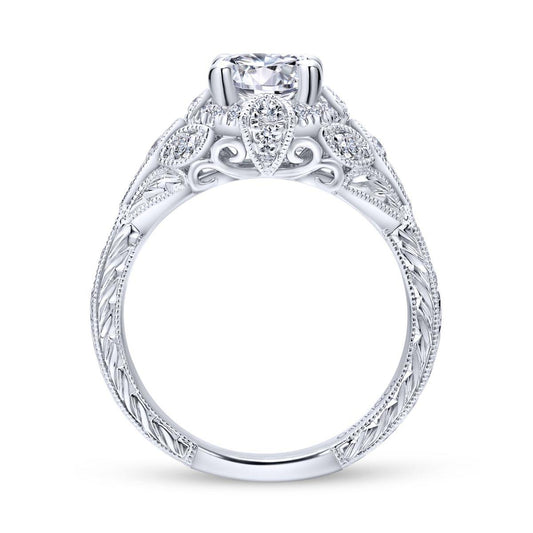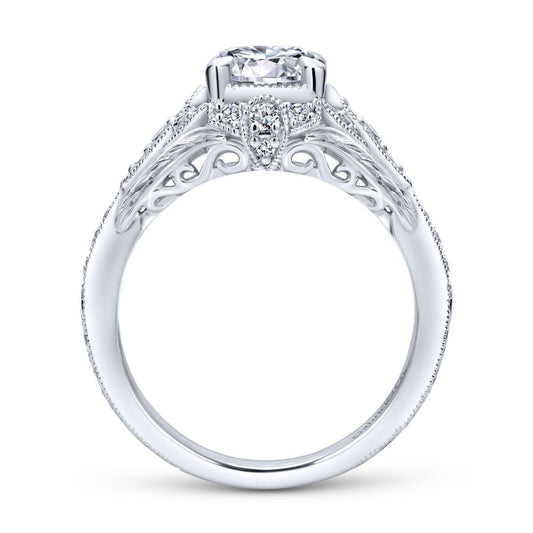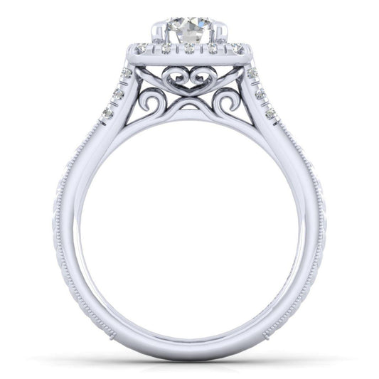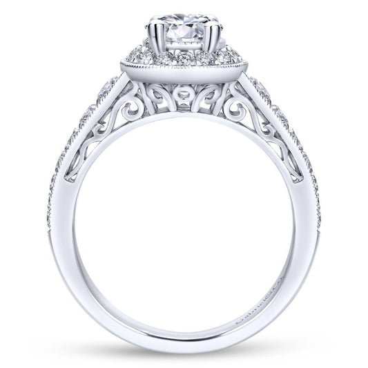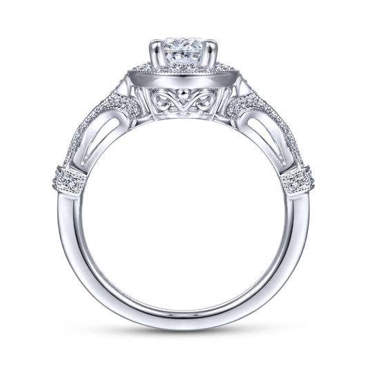 Gabriel & Co. 14k White Gold Victorian Halo Engagement Ring
