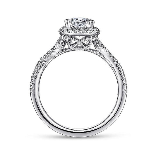 Gabriel & Co. ER14314W44JJ 14K White Gold Cushion Halo Diamond Engagement Ring