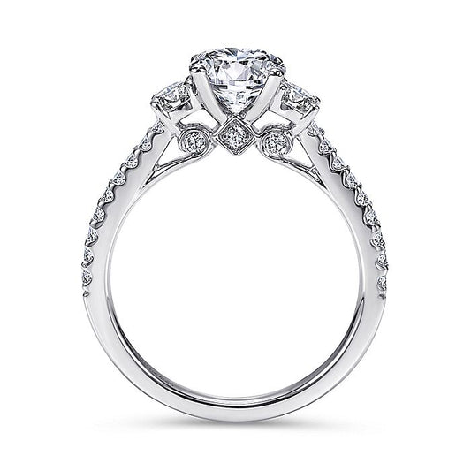 Gabriel & Co. ER7296W44JJ 14K White Gold Round Three Stone Diamond Engagement Ring