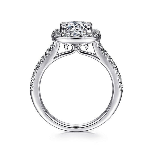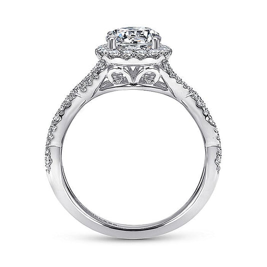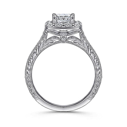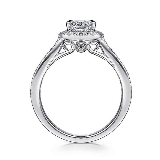 Gabriel & Co. ER7500W44JJ Vintage Inspired 14K White Gold Cushion Halo Diamond Engagement Ring