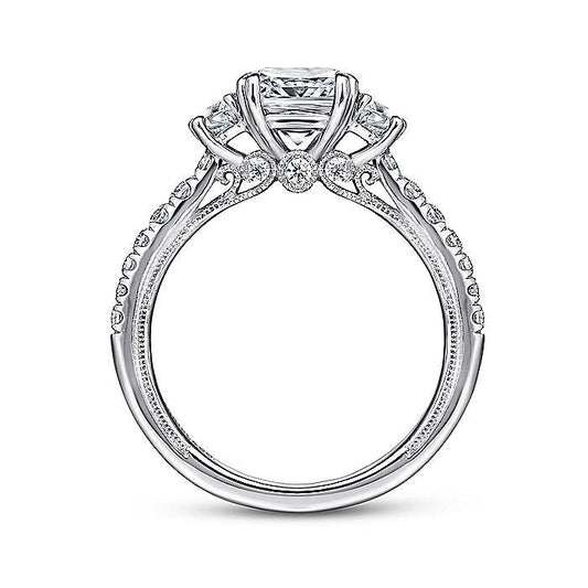 Gabriel & Co. ER9186W44JJ 14K White Gold Cushion Cut Three Stone Diamond Engagement Ring