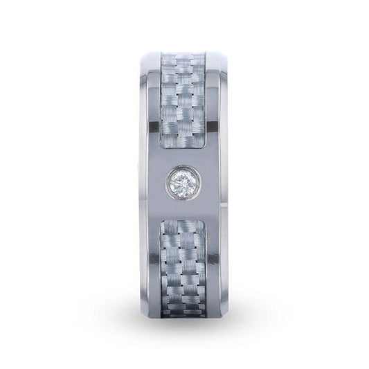 MAYBACH Light Gray Carbon Fiber Titanium Men's Wedding Band with White Diamond In The Squared Center Setting And Polished Beveled Edges - 8mm