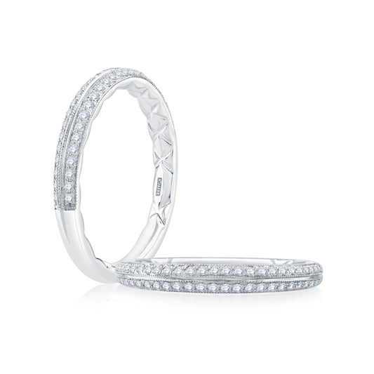 A.Jaffe Modern Vintage Two Row Milgrain Detail Diamond Quilted Wedding Band MR2294Q/22