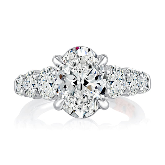 Classic Four Prong Oval Cut Diamond Flanked Engagement Ring MECOV2855/426B