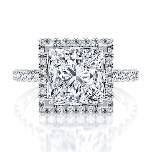 Moder Radiant Cut Diamond Engagement Ring with Halo and Pave Band MECPC2920Q/242