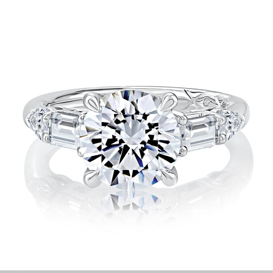 Three Stone Round Center Diamond Engagment Ring MECRDB2521H/270