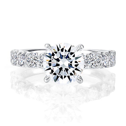 A timeless solitaire engagement ring showcasing an round-cut center diamond. Its clean, elegant lines make it an enduring choice for those who appreciate refined simplicity. MECRD2959Q/308