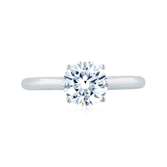 A timeless solitaire engagement ring showcasing an round-cut center diamond. Its clean, elegant lines make it an enduring choice for those who appreciate refined simplicity. MECRD2959Q/156