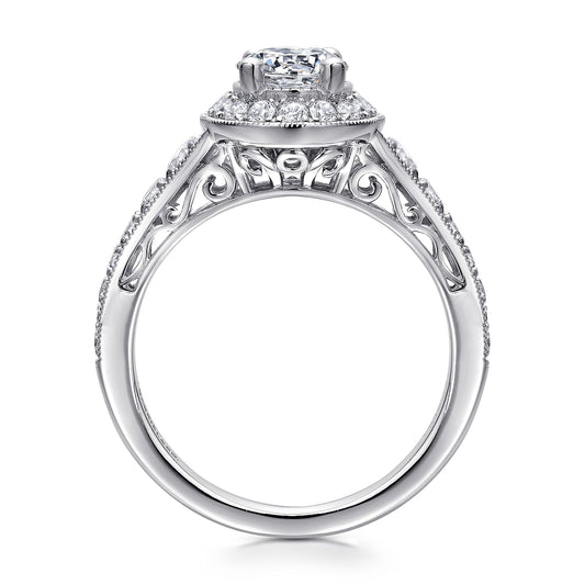 Vendor:Gabriel & Co.Unique 14K White Gold Vintage Inspired Halo Diamond Engagement RingRegular price $2,375.00Regular priceUnit price per-