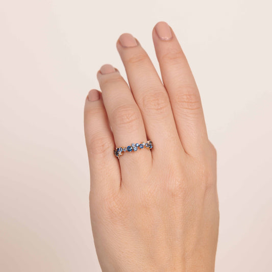Stackable Eternity Band with Diamond and Milgrain Multi-Shape Alternating Design