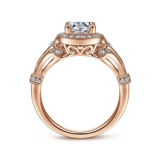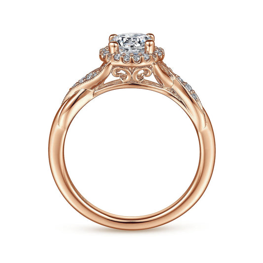 Vintage Inspired 14K Rose Gold Round Halo Diamond Engagement Ring
