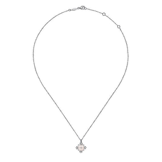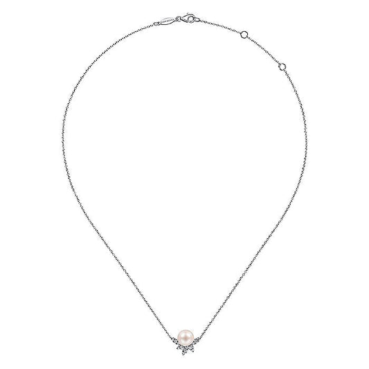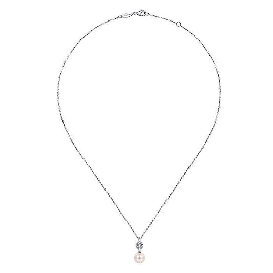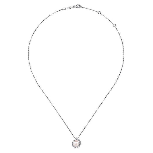 Gabriel & Co. NK6440W45PL 14K White Gold Round Pearl Pendant Necklace with Diamond Accents