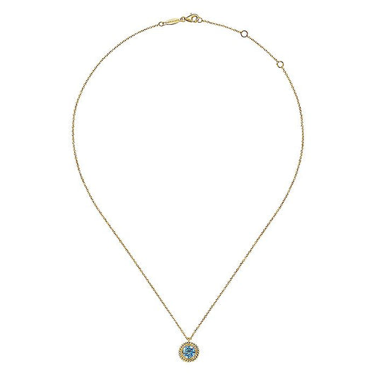Gabriel & Co. NK6345Y4JBT 14K Yellow Gold Round Blue Topaz and Twisted Rope Pendant Necklace