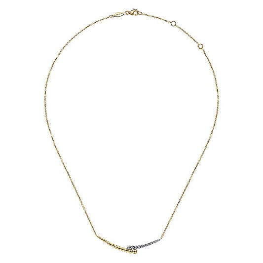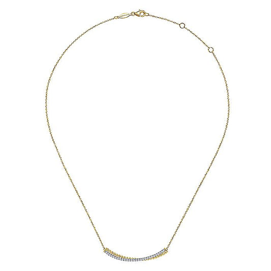 Gabriel & Co. NK6367M45JJ 14K Yellow-White Gold Bujukan Bead and Diamond Pavé Curved Bar Necklace