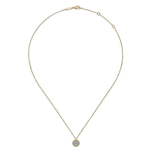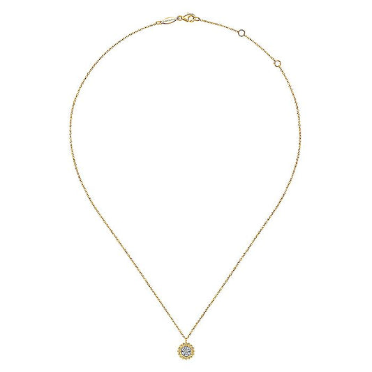 Gabriel & Co. NK6366Y45JJ 14K Yellow Gold Round Diamond Pavé Pendant Necklace with Bujukan Bead Frame
