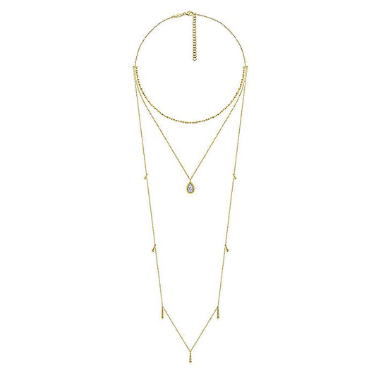 Gabriel & Co. NK6369M45JJ 14K Yellow Gold 3 Strand Teardrop Diamond Pavé Necklace with Drops