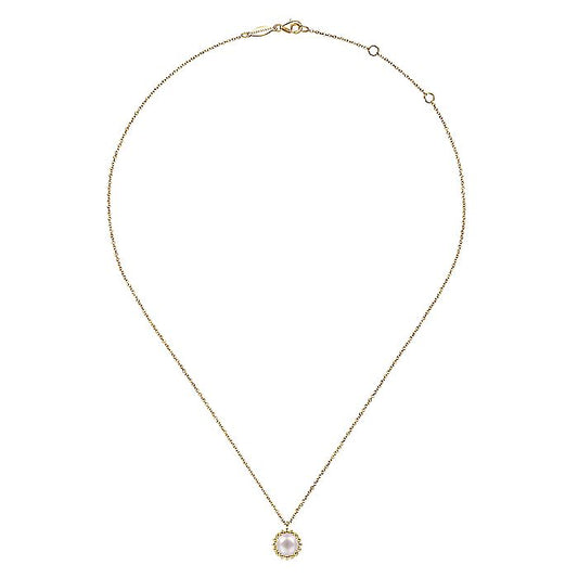 Gabriel & Co. NK6412Y4JPL 14K Yellow Gold Round Pearl Pendant Necklace with Bujukan Beaded Frame