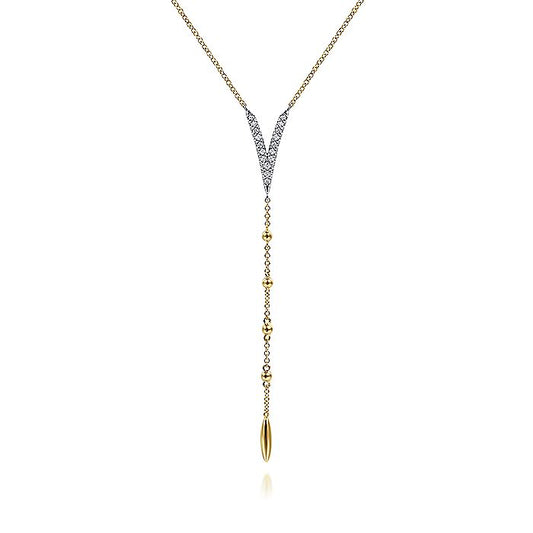 Gabriel & Co. NK6448M45JJ 18.5 Inch 14K Yellow-White Gold Pavé Diamond Chevron Y Necklace