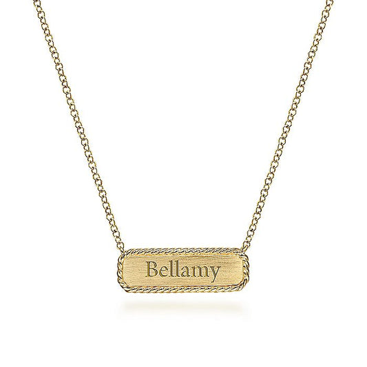 Gabriel & Co. NK6467Y4JJJ 14K Yellow Gold Rectangular ID Pendant Necklace with Twisted Rope Frame