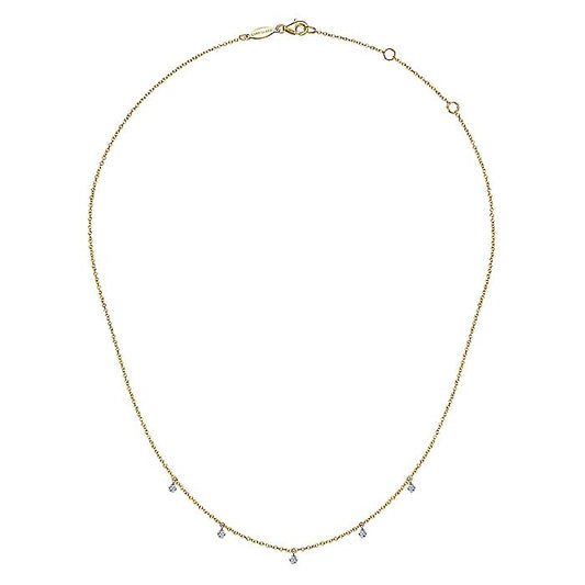 Gabriel & Co. NK6469M45JJ 14K Yellow-White Gold Chain Necklace with Bezel Set Diamond Drops