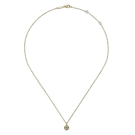 Gabriel & Co. NK6472Y4JWS 14K Yellow Gold Round Bezel Set White Sapphire Pendant Necklace