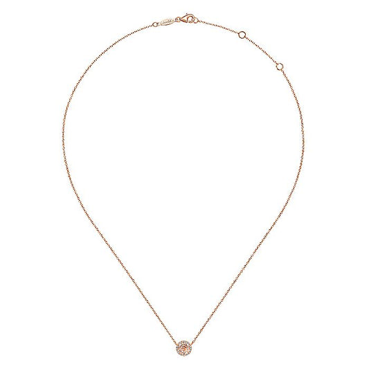 Gabriel & Co. NK4616K45MO 14K Rose Gold Round Morganite and Diamond Halo Pendant Necklace