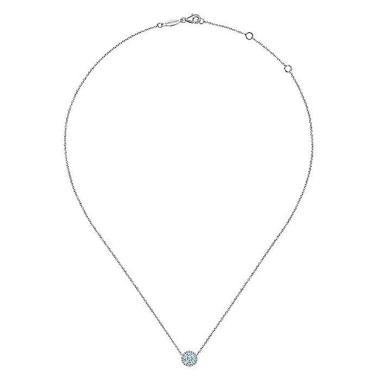 Gabriel & Co. NK4616W45AQ 14K White Gold Round Aquamarine and Diamond Halo Pendant Necklace