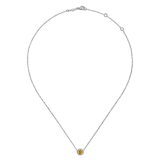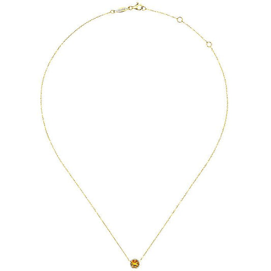 Gabriel & Co. NK4616Y45CT 14K Yellow Gold Round Citrine and Diamond Halo Pendant Necklace