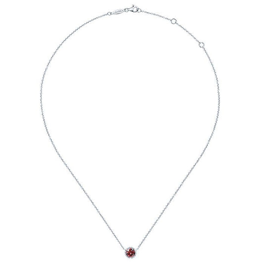 Gabriel & Co. NK4616W45GN 14K White Gold Round Garnet and Diamond Halo Pendant Necklace