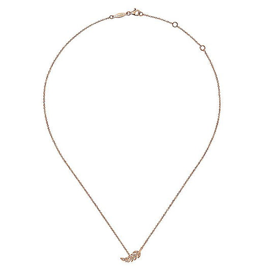 Gabriel & Co. NK4627K45JJ 14K Rose Gold Diamond Leaf Pendant Necklace