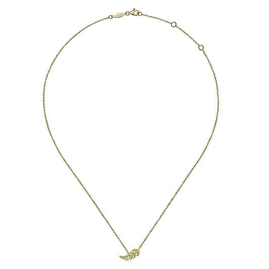 Gabriel & Co. NK4627Y45JJ 14K Yellow Gold Diamond Leaf Pendant Necklace