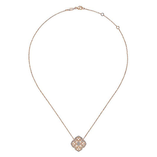 Gabriel & Co. NK4751K45JJ Vintage Inspired 14K Rose Gold Filigree Diamond Pendant Necklace