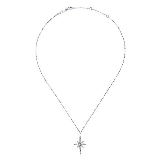 Gabriel & Co. NK4847W45JJ 14K White Gold Diamond Starburst Pendant Necklace