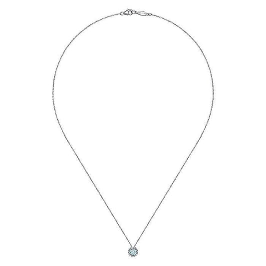 Gabriel & Co. NK2824W45AQ 14K White Gold Aquamarine and Diamond Halo Pendant Necklace
