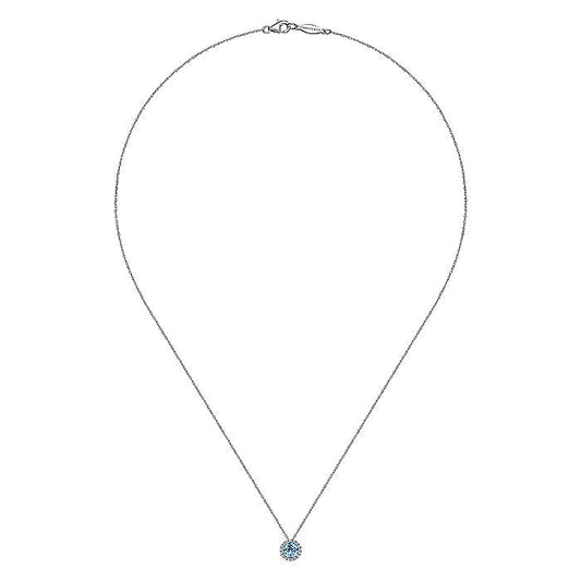 Gabriel & Co. NK2824W45BT 14K White Gold Round Swiss Blue Topaz and Diamond Halo Pendant Necklace