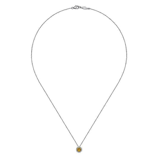 Gabriel & Co. NK2824W45CT 14K White Gold Round Citrine and Diamond Halo Pendant Necklace