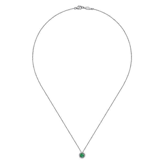 Gabriel & Co. NK2824W45EA 14K White Gold Emerald and Diamond Halo Pendant Necklace