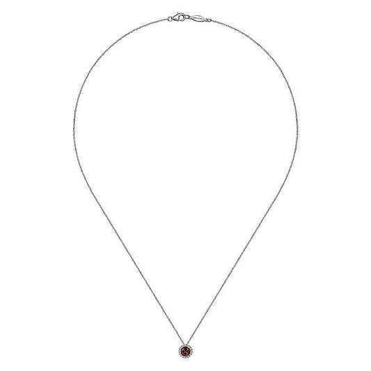 Gabriel & Co. NK2824W45GN 14K White Gold Garnet and Diamond Halo Pendant Necklace