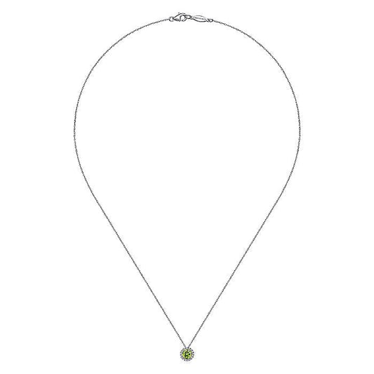 Gabriel & Co. NK2824W45PE 14K White Gold Peridot and Diamond Halo Pendant Necklace