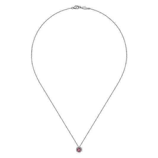 Gabriel & Co. NK2824W45RA 14K White Gold Ruby and Diamond Halo Pendant Necklace
