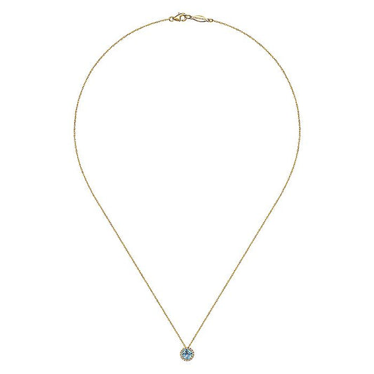 Gabriel & Co. NK2824Y45BT 14K Yellow Gold Round Swiss Blue Topaz and Diamond Halo Pendant Necklace