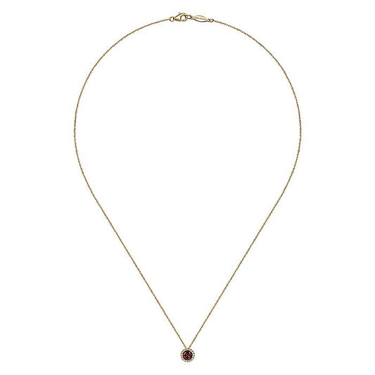 Gabriel & Co. NK2824Y45GN 14K Yellow Gold Garnet and Diamond Halo Pendant Necklace