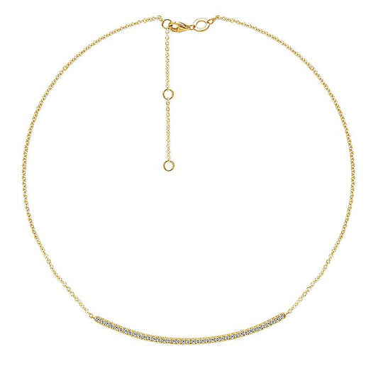 Gabriel & Co. NK4274Y45JJ 18 inch 14K Yellow Gold Diamond Pavé Curved Bar Necklace