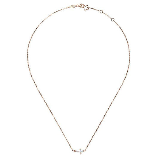Gabriel & Co. NK4345K45JJ 14K Rose Gold Sideways Curved Diamond Cross Necklace